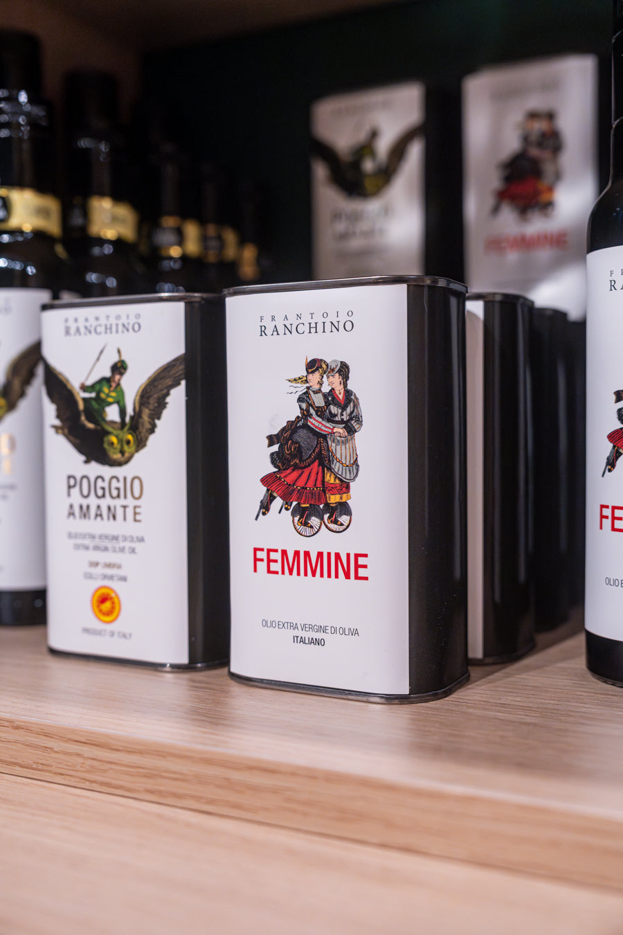 Prodotto: Olio Extra vergine di oliva 100% Italiano. Oliveti: sesto di impianto 5.5x5, vaso policonico e 6x3, monocono. Età impianti: da 5 a 50 anni. Cultivar: Leccino 30%, Frantoio 30%, Moraiolo 30% e altre a completamento. Terreni: Prevalentemente di origine vulcanica in parte argille e sabbie del Pliocene. Metodo di frangitura: frangitore a coltelli MORI TEM con prefrangitore. Gramolazione: 15 minuti in gramole verticali sottovuoto. Estrazione: Ciclo continuo a due fasi. Filtrazione: cartone V0. Conservazione: tank inox sotto battente di gas inerte e temperatura controllata. Descrizione del prodotto: dedicato alle mie figlie, Giulia e Rosa è un olio delicato e speciale. Alla vista: appare verde con tenui riflessi dorati. All’olfatto: ampio ed elegante nelle note erbacee fresche che spaziano dall’erba fresca appena tagliata alla misticanza di campo. Chiusura di erbe aromatiche in cui domina il rosmarino e i suoi fiori. Al gusto: elegante ed armonico nelle note amare e piccanti che risultano piacevolmente potenti. Nella parte retronasale evidenti note di cicoria. Abbinamenti gastronomici: ideale per tutti i condimenti a crudo, può esaltare piatti a base di legumi, patate al cartoccio, primi piatti al pomodoro, formaggi freschi a pasta filata, tartare di tonno, carpaccio di salmone, coniglio al forno, pollo alla brace.